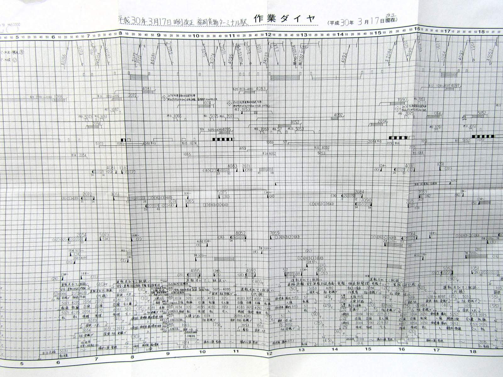駅構内作業ダイヤ 「福岡貨物ターミナル駅」(運転) 平成30年3月17日改正