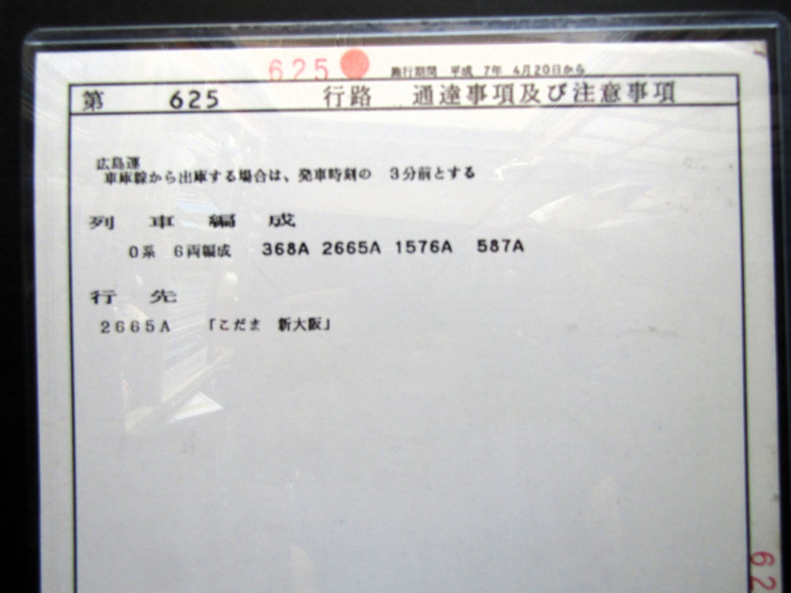 山陽新幹線 運転士時刻表 第 625行 路 広幹運乗派 施行期間;平成7年4月20日 から