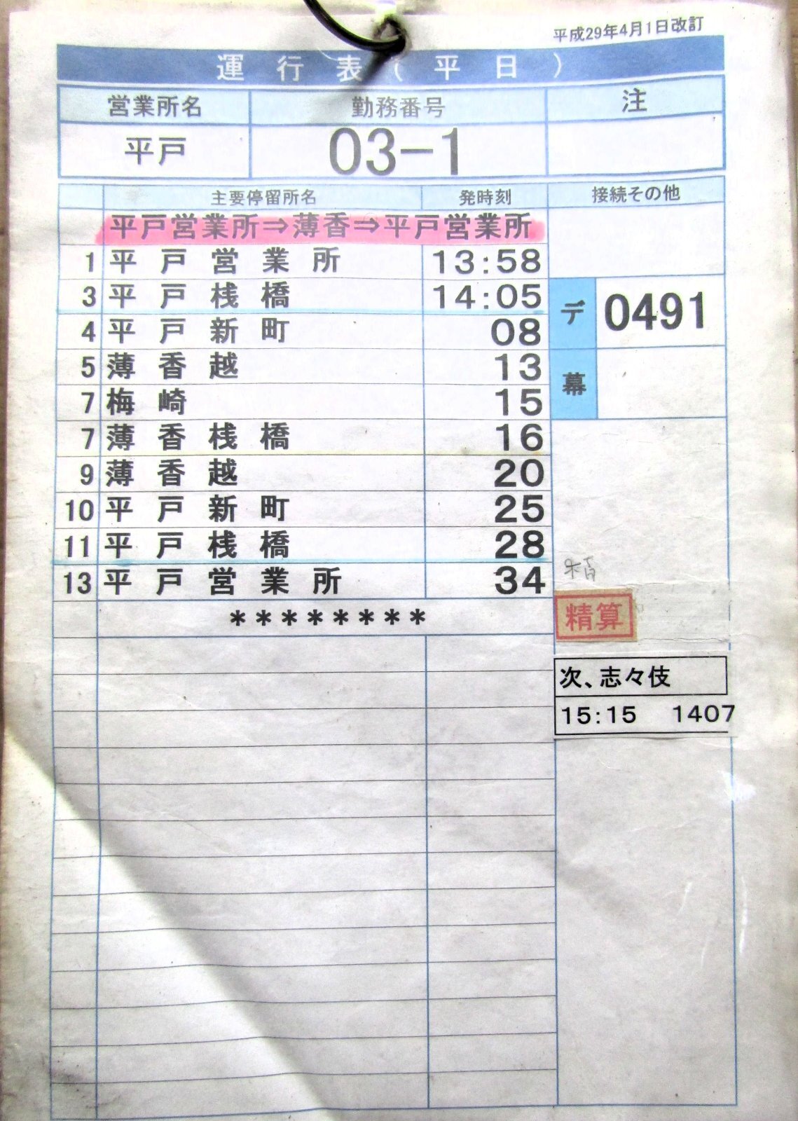 駅構内作業ダイヤ表(2025,5現在在庫)