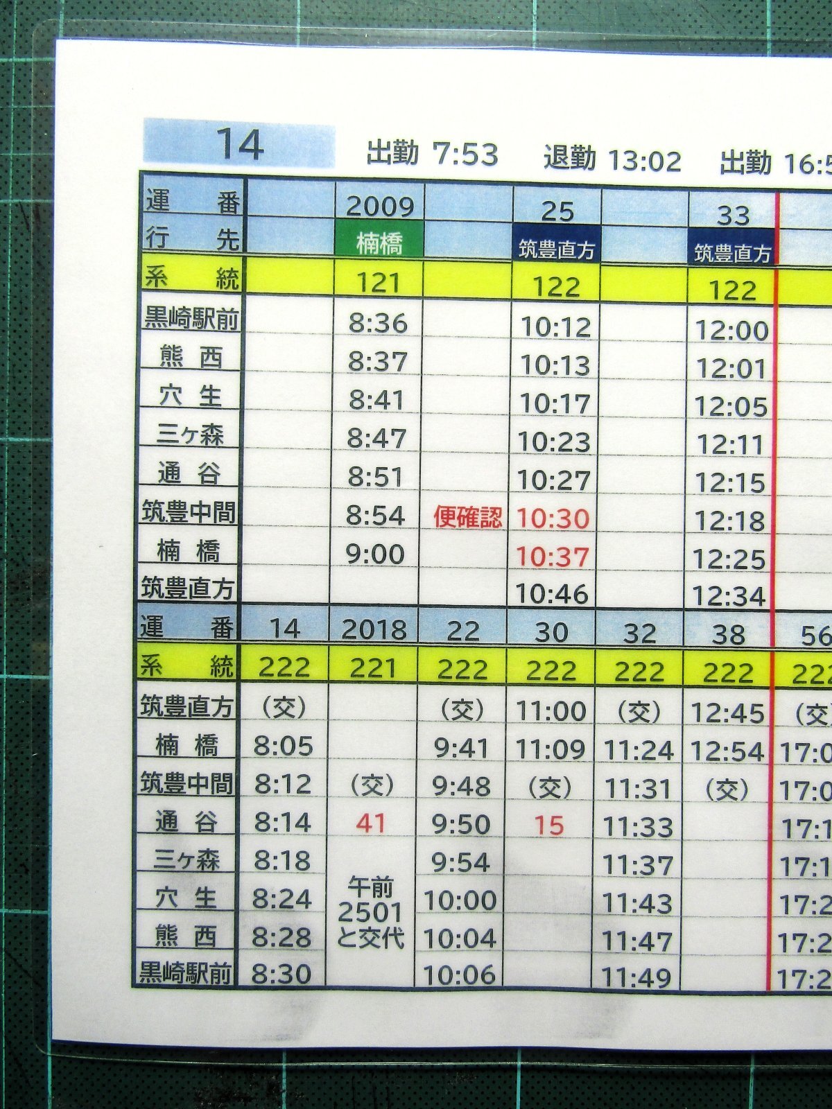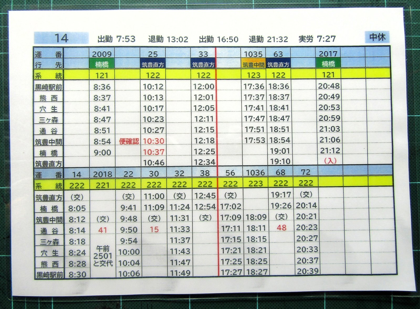 出勤:7;53 退勤 :13;02(中休)出勤16;50 退勤21;32